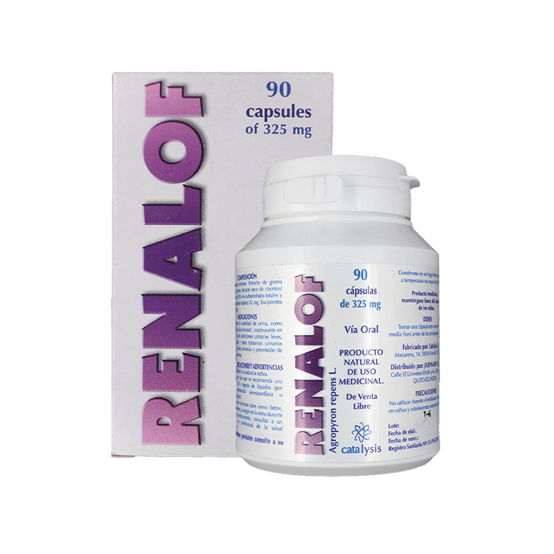 SUPLEMENTO ALIMENTICIO A BASE DE SILICATO DE MAGNESIO Y AGROPYRON REPENS, QUE PULVERIZA LOS CÁLCULOS RENALES Y EJERCE UNA ACCIÓN DIURÉTICA PARA AYUDAR A EXPULSARLOS SIN DOLOR.